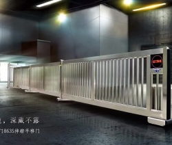 露天的電動伸縮門光澤無限,不易粘塵,不被污染氣體腐蝕,門體采用優質不銹鋼或鋁合金等材料制作,采用平行四邊形原理交接,伸縮靈活。